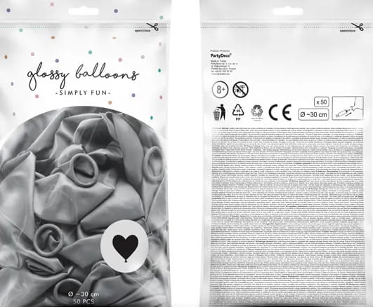 Balony glossy serca srebrne 30cm 1op/50szt
